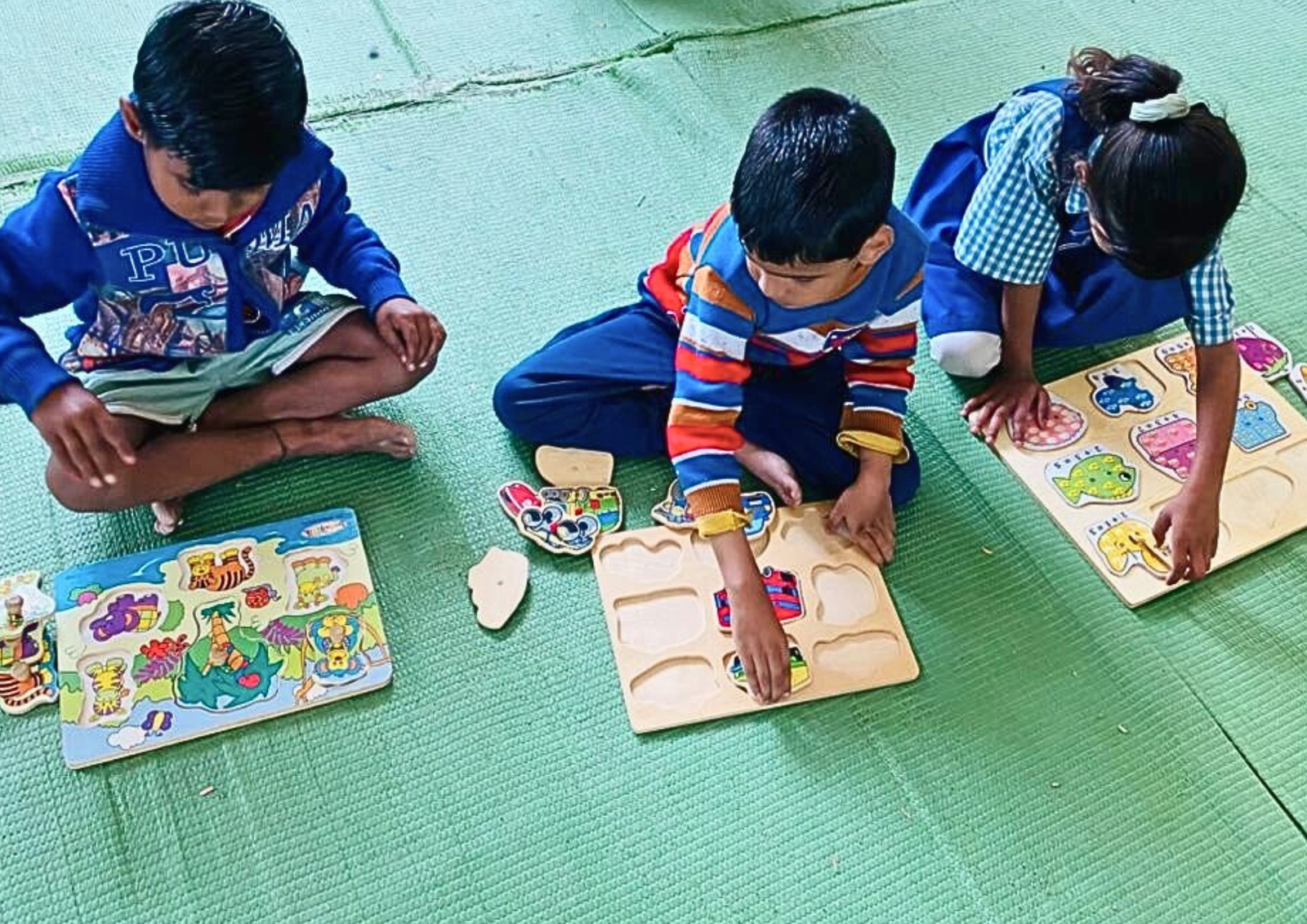Development of speaking and listening skills through games, songs, discussions and play.